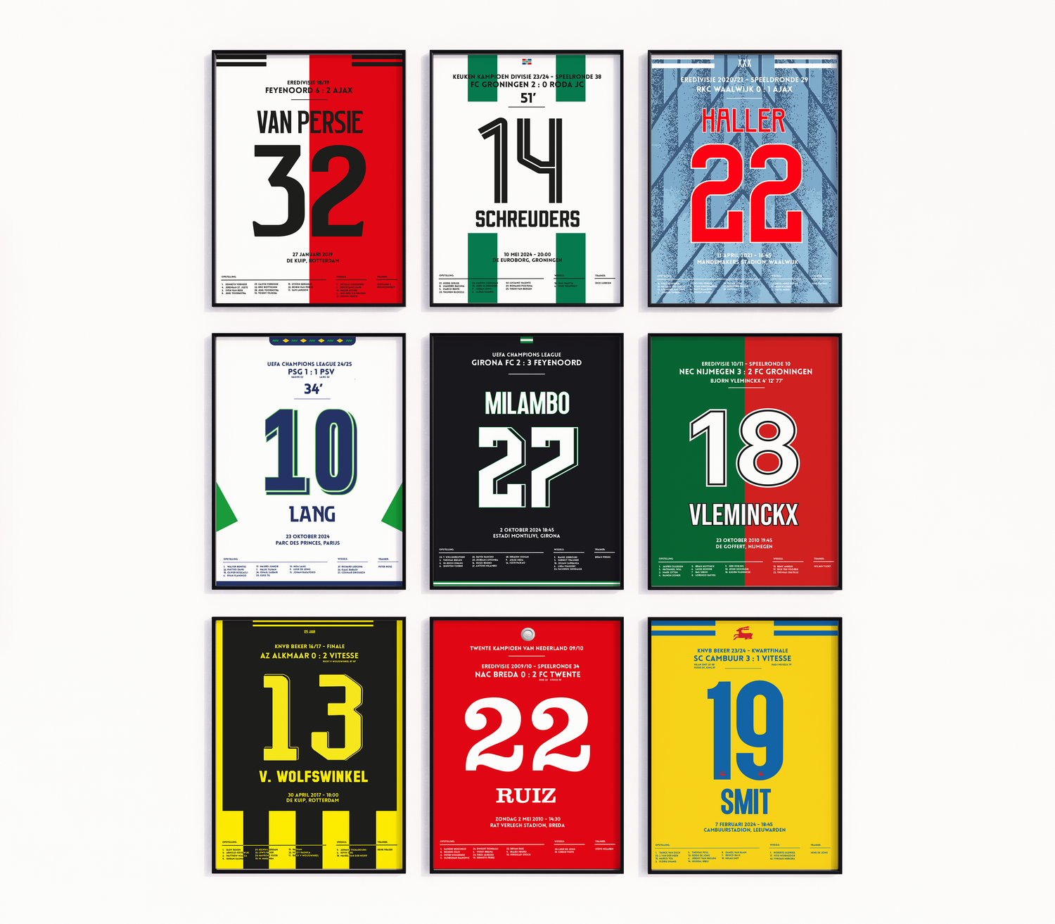 Verzamel de meest legendarische voetbalmomenten met onze exclusieve posters. Elk design vertelt een uniek verhaal – van historische goals tot belangrijke wedstrijden en spelers die de geschiedenis hebben veranderd. Binnenkort blader je door onze collectie en vind de poster die jouw liefde voor het spel laat zien!